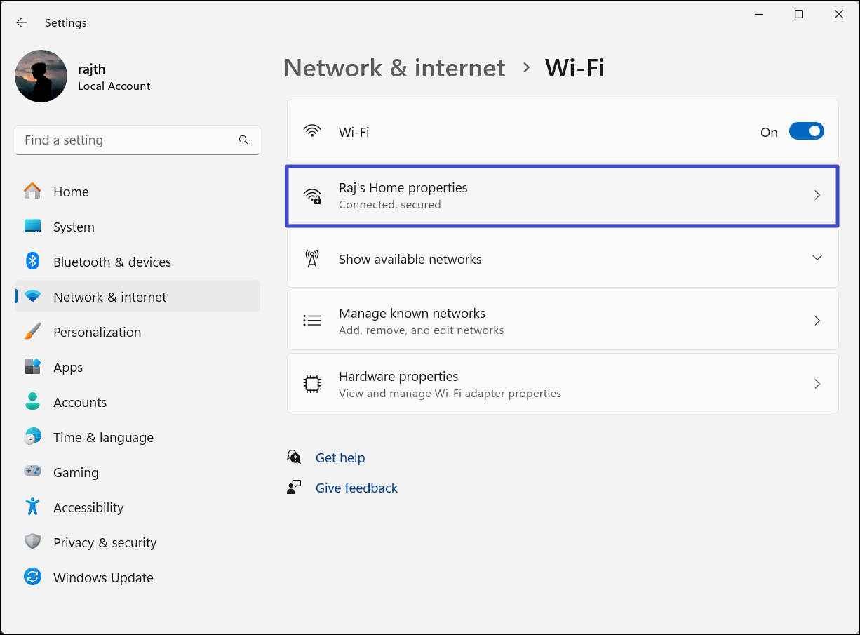 3. 然後,選擇您當前使用的網絡連接。