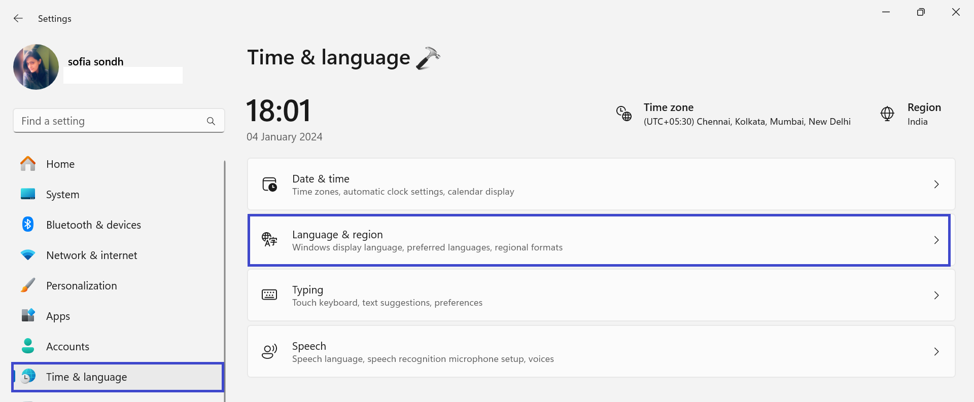 1. 打開“設置”應用程序並轉到“時間和語言”。