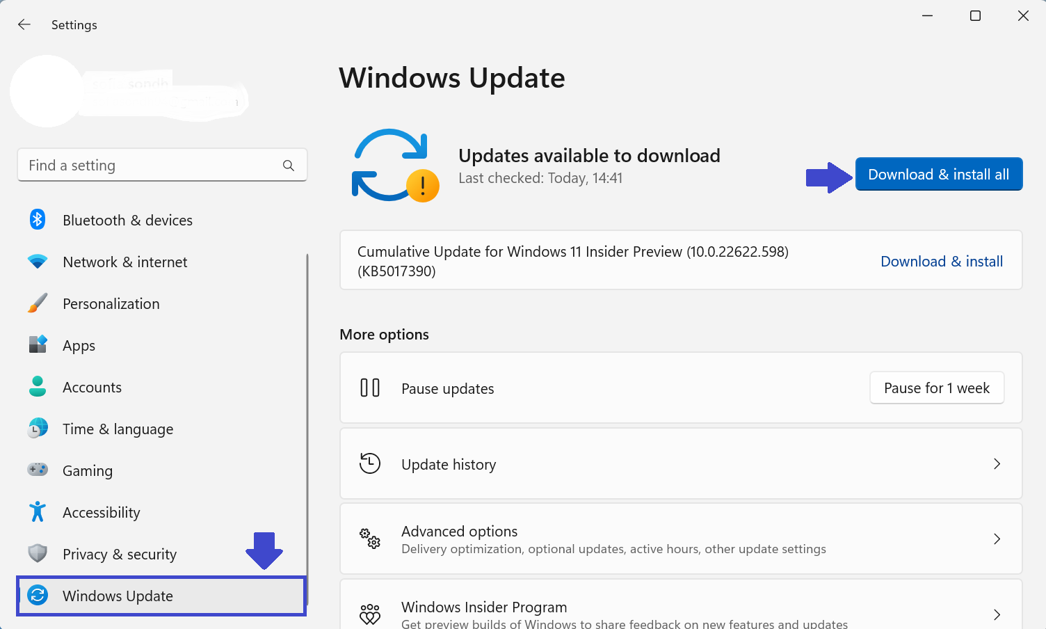 如果您的 Windows 不是最新的,那麼它也可能會導致一些問題。以下是檢查更新並修復病毒可能造成的任何損壞的步驟: