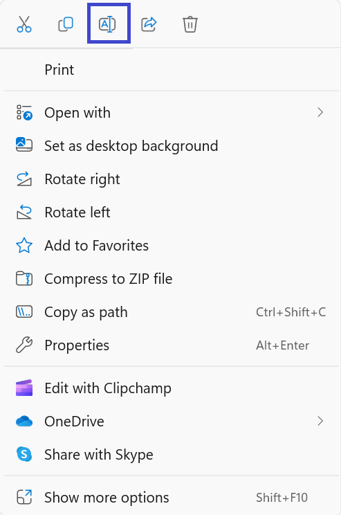 方法二:右鍵單擊桌面上要重命名的文件。然後,單擊重命名打開的上下文菜單中的選項。