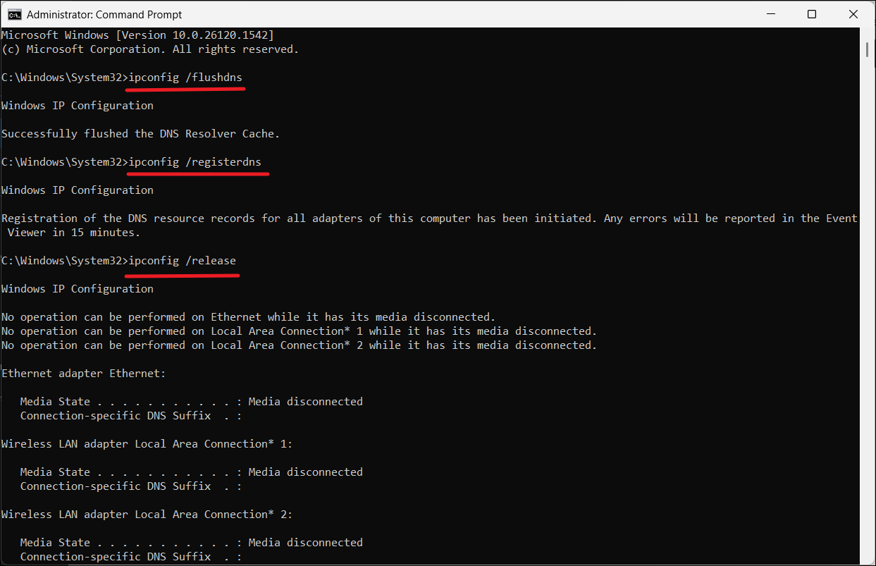 ERR_ADDRESS_INVALID 錯誤的主要原因之一是 PC 上存儲的 DNS 緩存已損壞。清除這些文件以修復錯誤。