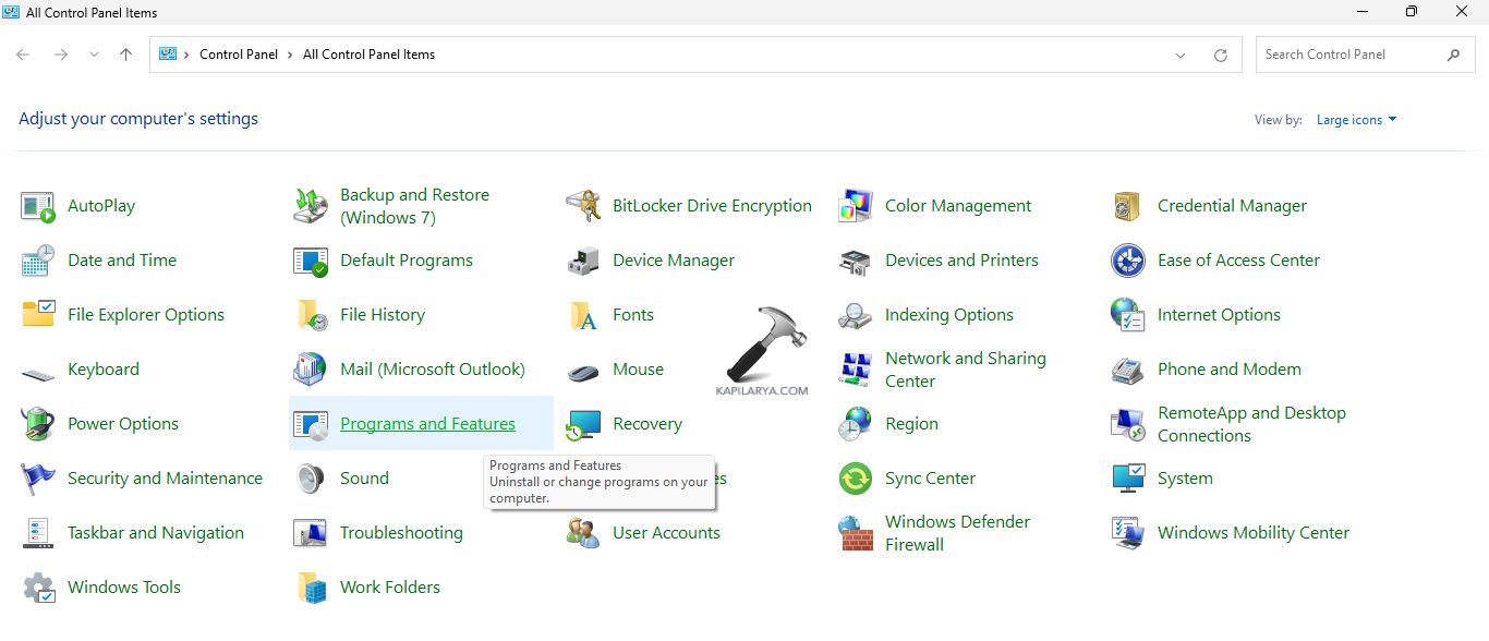 步驟2-接下來,轉到程序 > 程序和功能 > 打開或關閉 Windows 功能。