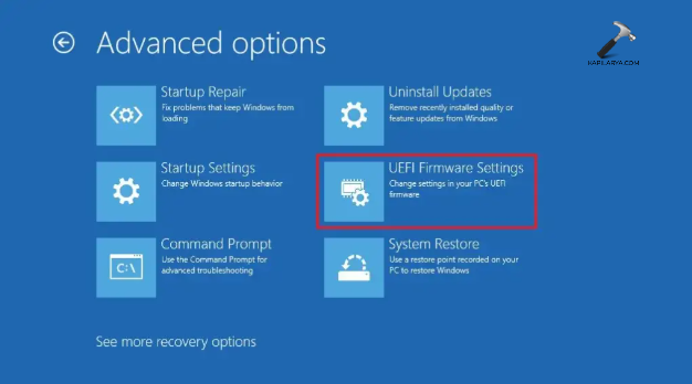 步驟3-現在,轉到高級選項 > UFFI 固件設置。