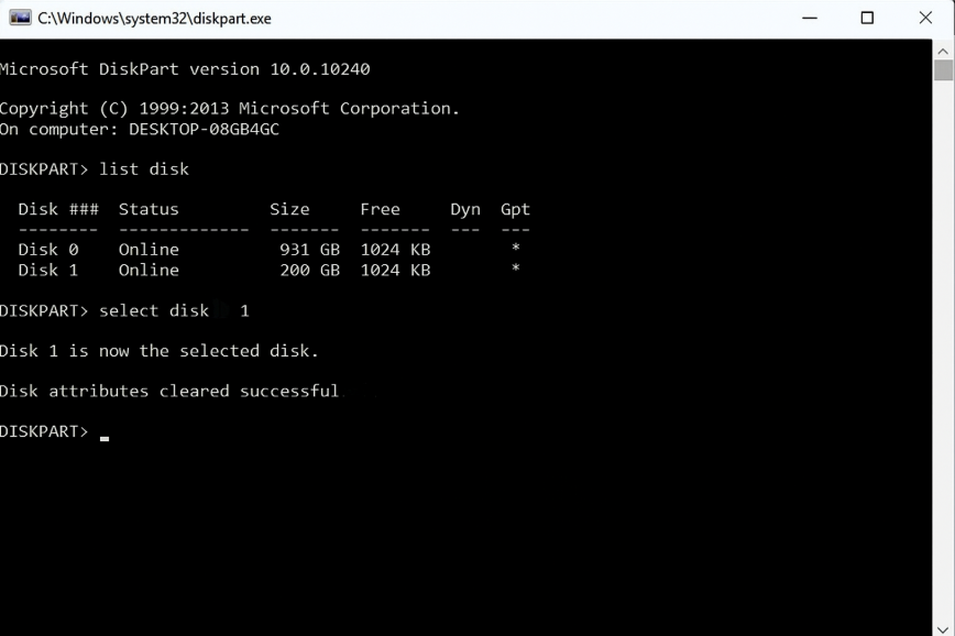 第5步:接下來,按 Enter 鍵屬性磁盤清除只讀命令。再次按 Enter 按鈕。