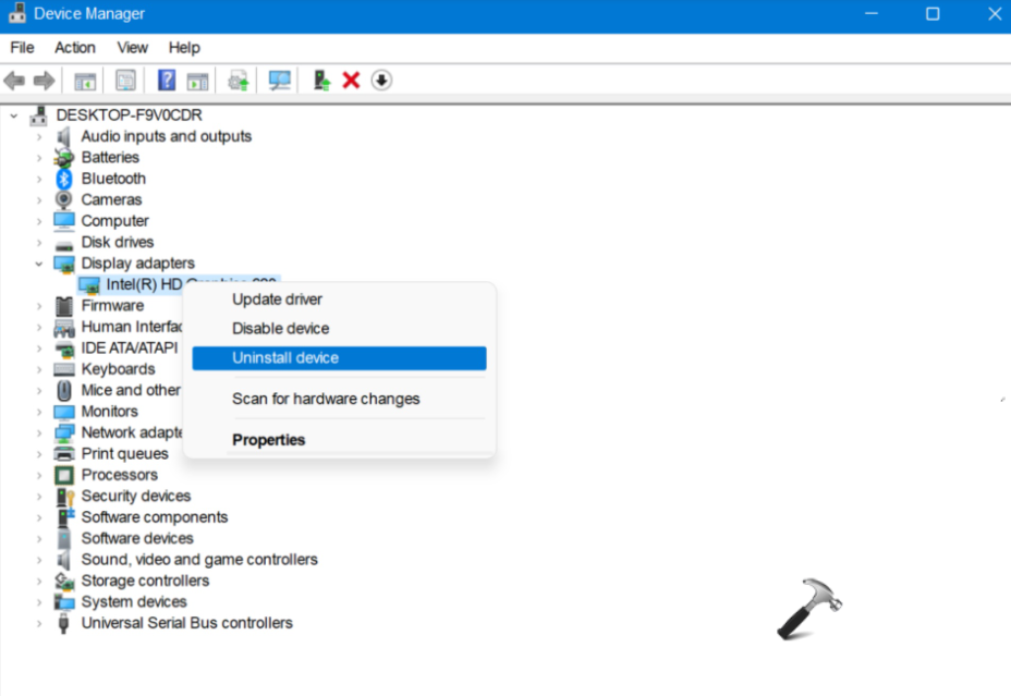 完成後,您還必須卸載 Intel Display HDMI/音頻驅動程序。為此,請執行以下說明: