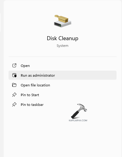 步驟1-首先,在搜索框中鍵入磁盤清理並以管理員身份運行。