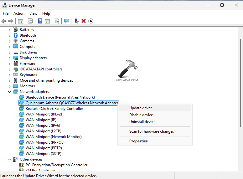 步驟3-檢查適配器列表,然後右鍵單擊帶有黃色警告標誌的適配器。現在,單擊更新驅動程序。
