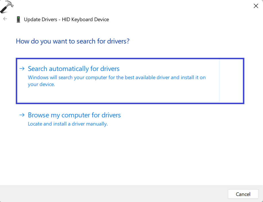 3. 會出現提示框。選擇 ”自動搜索驅動程序”。
