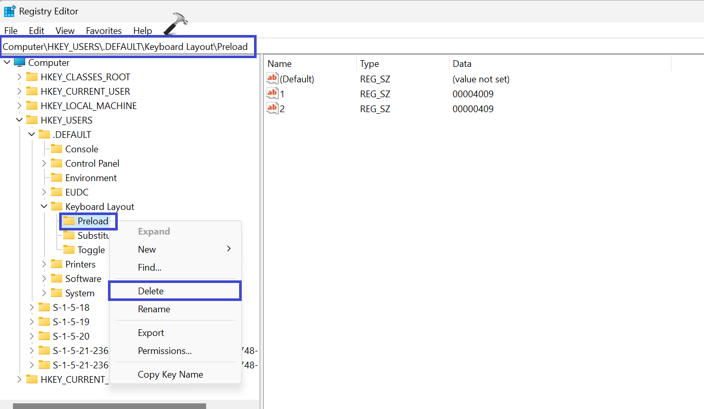 HKEY_USERS.DEFAULTKeyboard LayoutPreload
