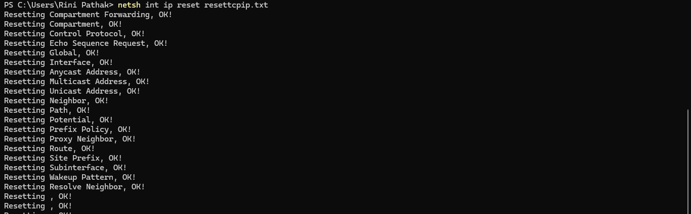 netsh int ip reset