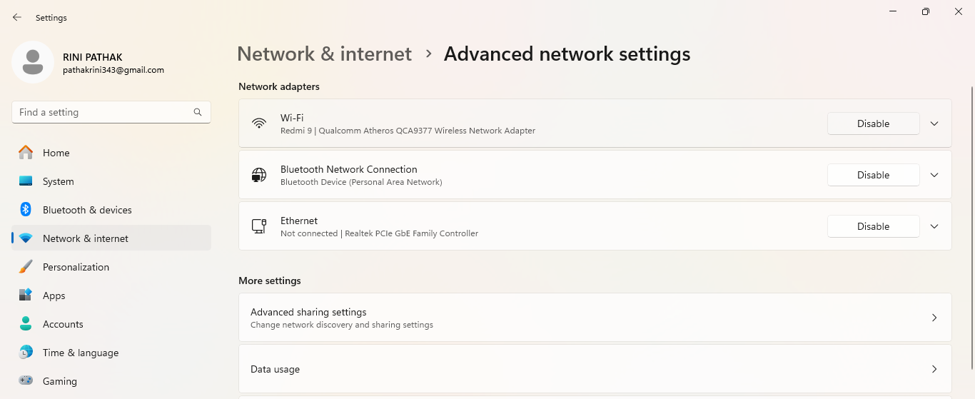 步驟1-首先,轉到“設置”>“網絡和 Internet”>“高級網絡設置”。
