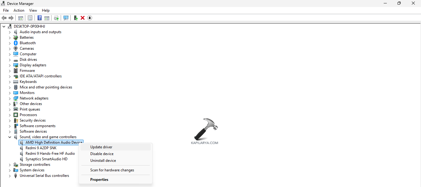 步驟2-接下來,右鍵單擊聲音驅動程序並選擇更新驅動程序。