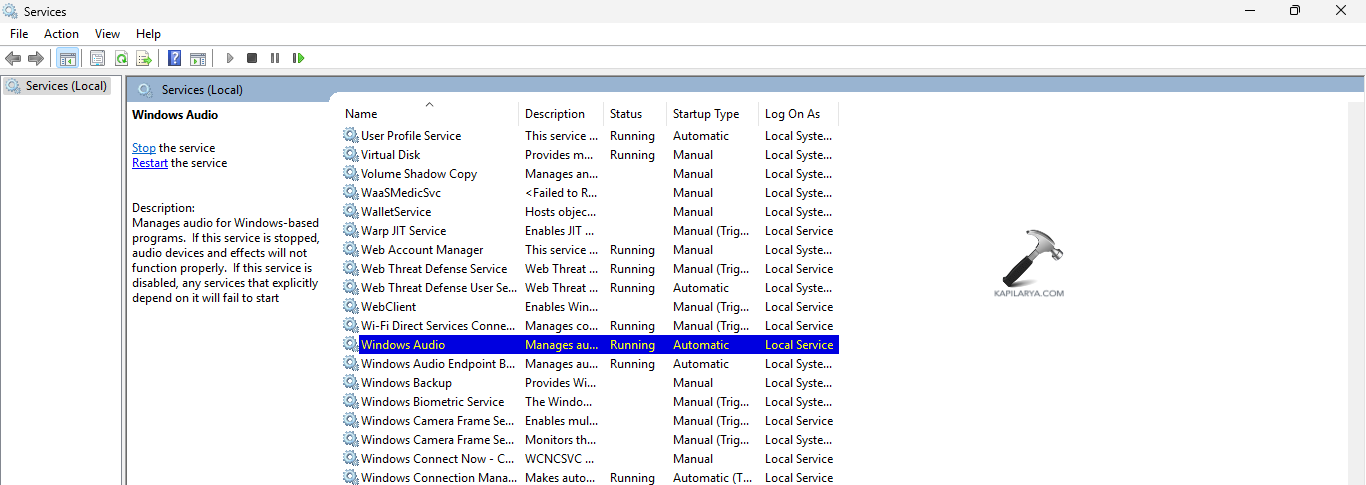 步驟2-現在,在“服務”窗口中,搜索“Windows 音頻”服務。
