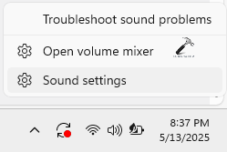 步驟1-首先,右鍵單擊任務欄上的音量圖標,然後選擇打開聲音設置。