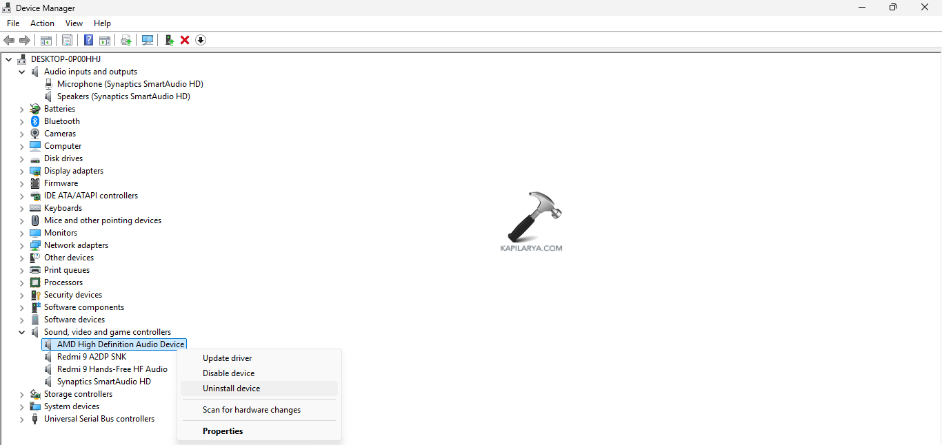 步驟2-接下來,右鍵單擊聲卡驅動程序並選擇卸載設備。