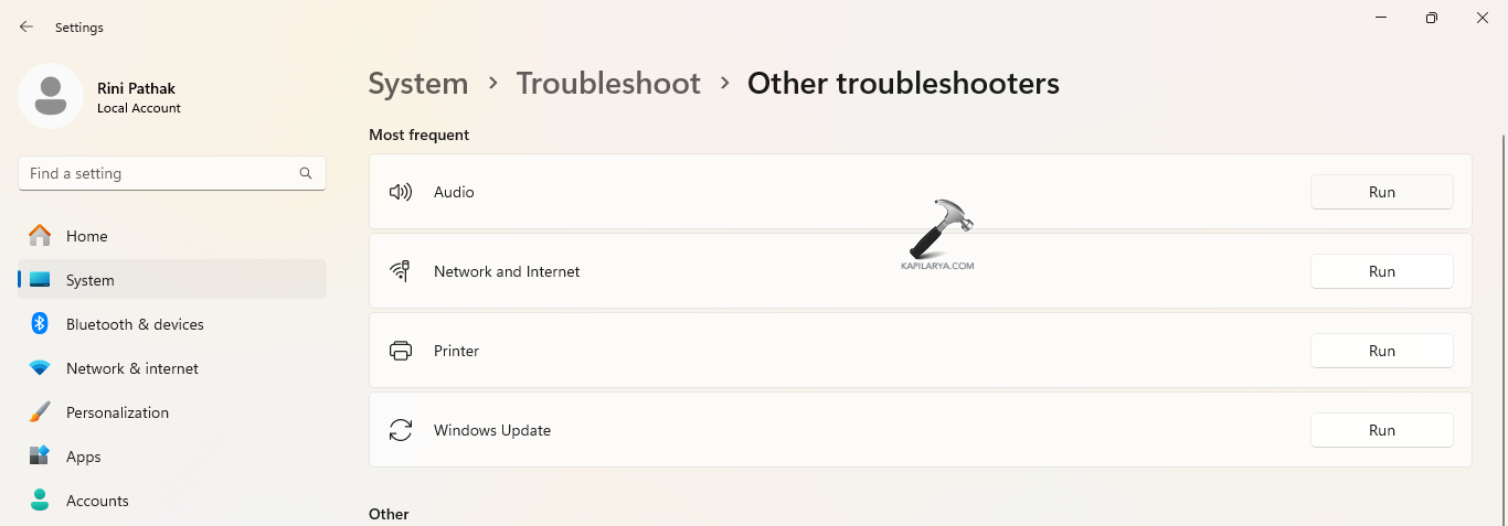 步驟1-首先,進入“設置”>“系統”>“疑難解答”>“其他疑難解答”。