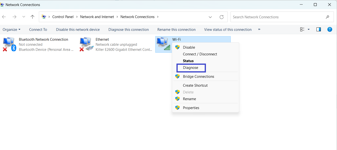 2. 右鍵單擊 Wi-Fi > 選擇診斷。