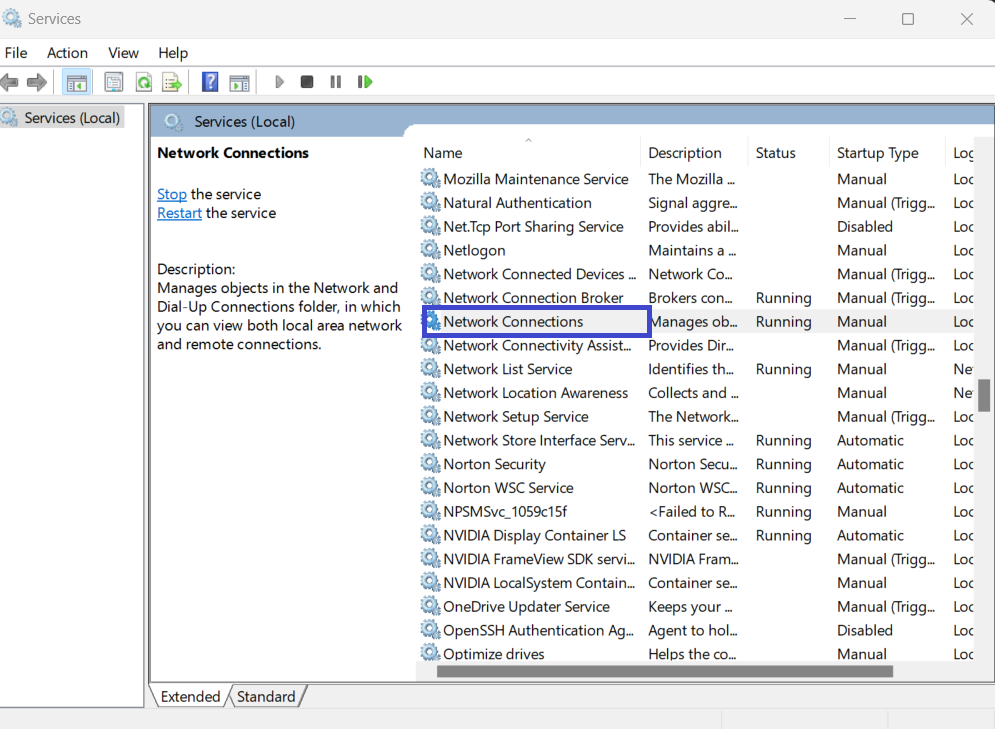 4. 返回“服務”窗口並雙擊“網絡連接”。