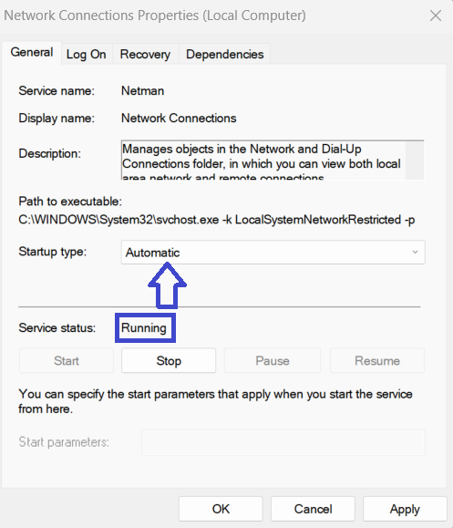 6. 服務狀態應為“正在運行”。如果沒有單擊開始。