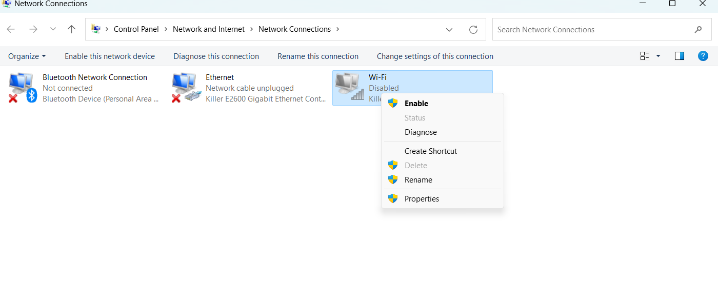 2. 右鍵單擊 Wi-Fi > 選擇啟用。