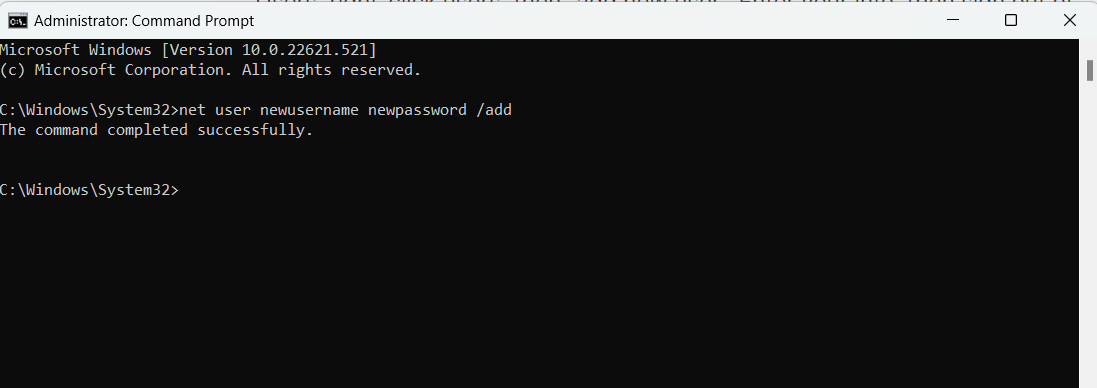 代替<newusername>和<newpassword>分別使用用戶名和密碼。