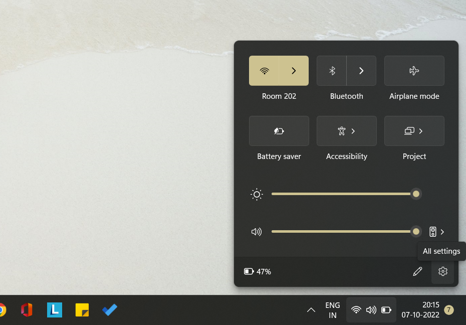 或者,您可以使用任務欄。單擊系統托盤,您可以通過單擊右下角的設置圖標來打開該應用程序。