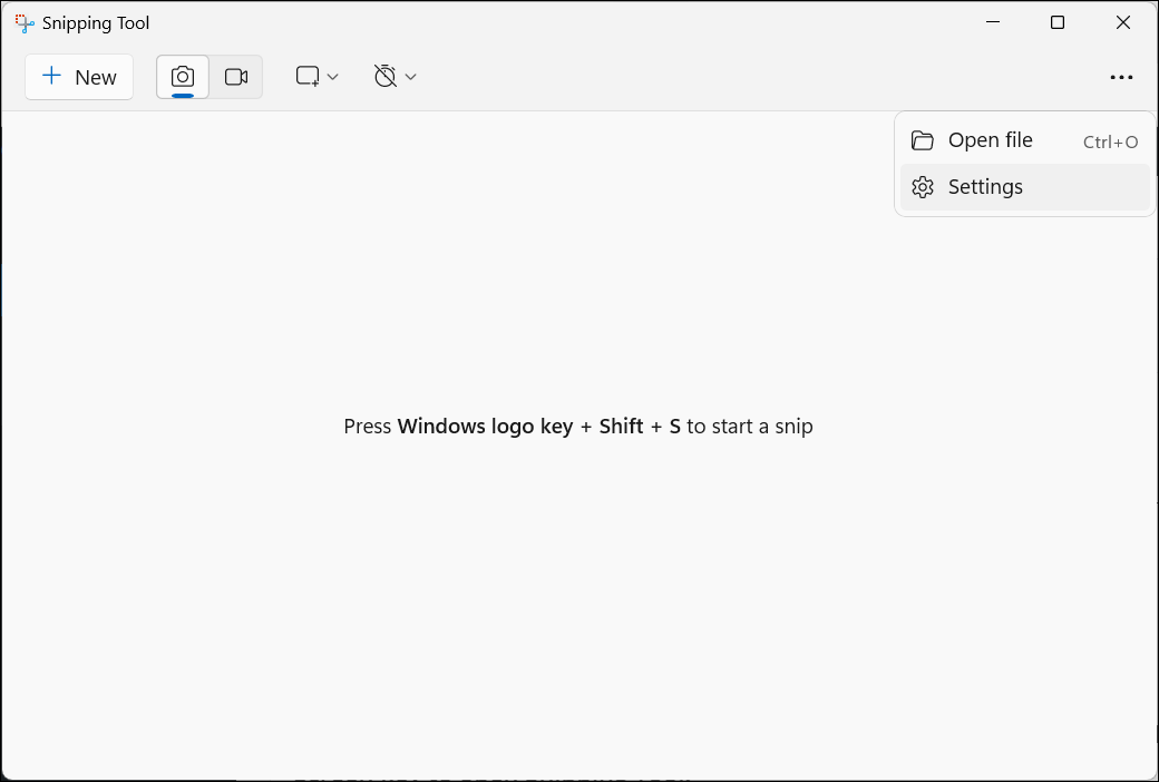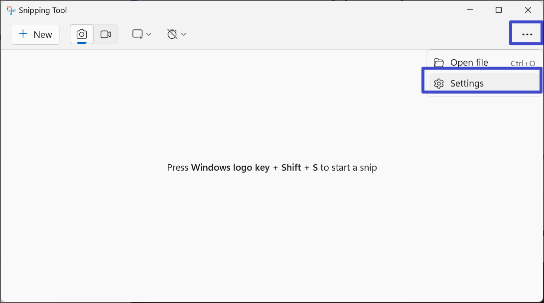 2. 在截圖工具窗口中,單擊三個點按鈕並選擇“設定”。