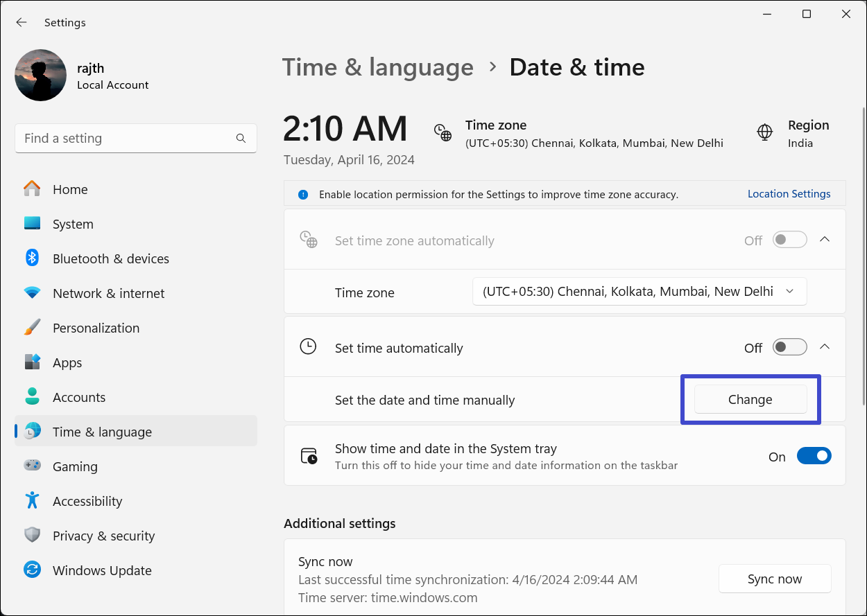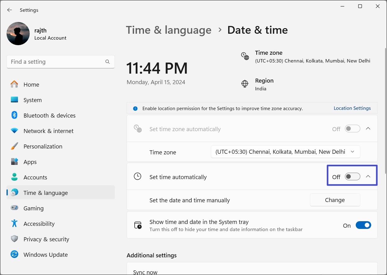 1. 打開 Windows 設置應用程序並轉至時間和語言 > 日期和時間。