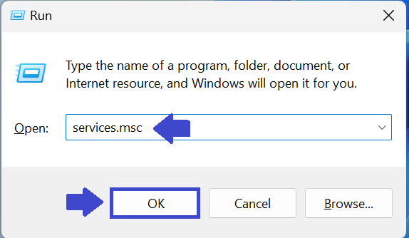 6. 要打開遙測服務,請按 Windows 鍵 + R 並鍵入 services.msc。單擊“確定”。