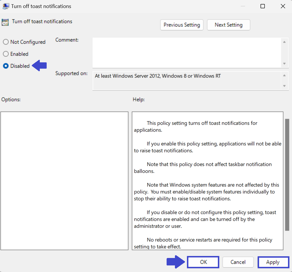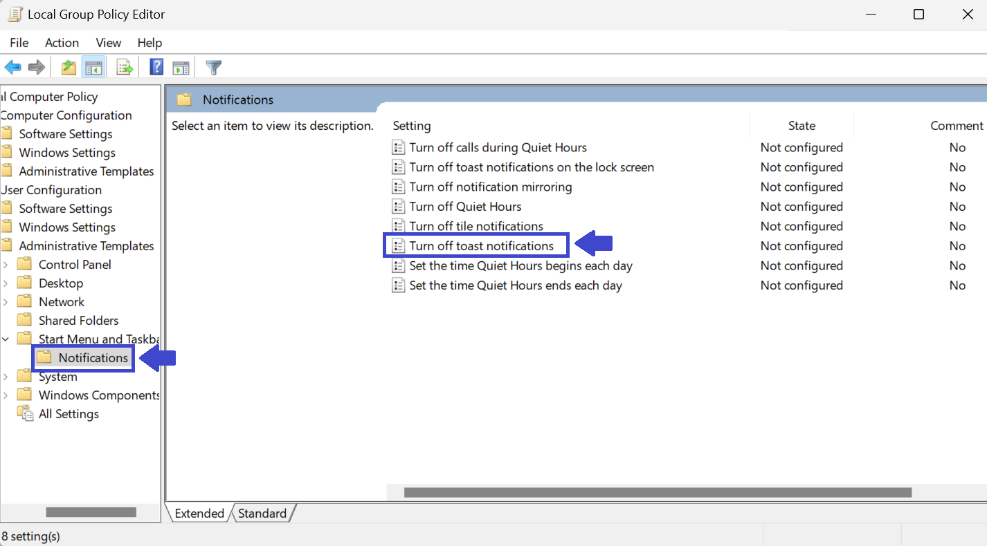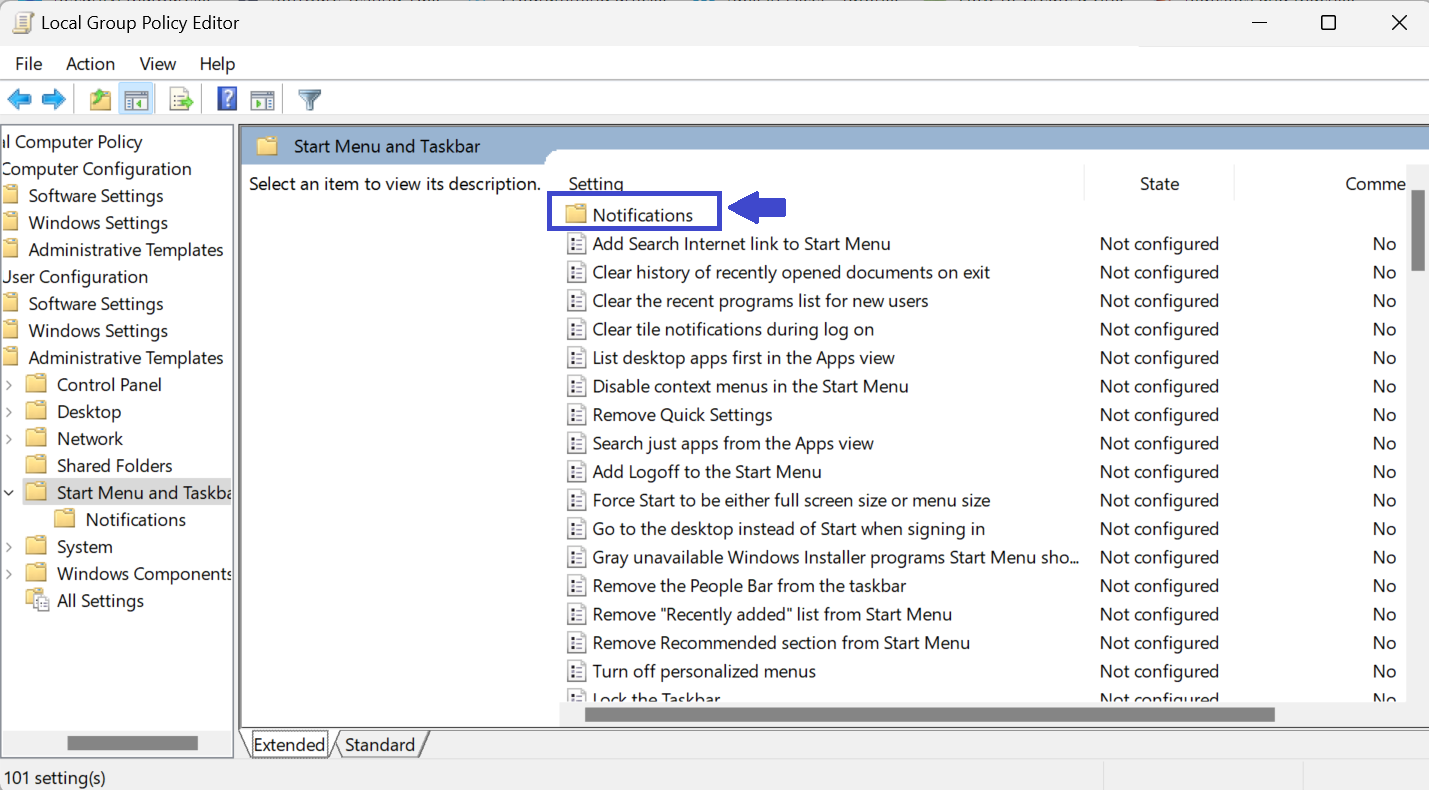 User ConfigurationAdministrative TemplatesStart Menu and TaskbarNotifications