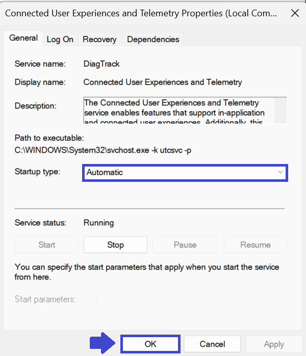 5. 進行更改後,您需要啟用 Telemetry 服務。