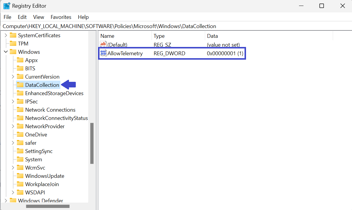 ComputerHKEY_LOCAL_MACHINESOFTWAREPoliciesMicrosoftWindowsDataCollection