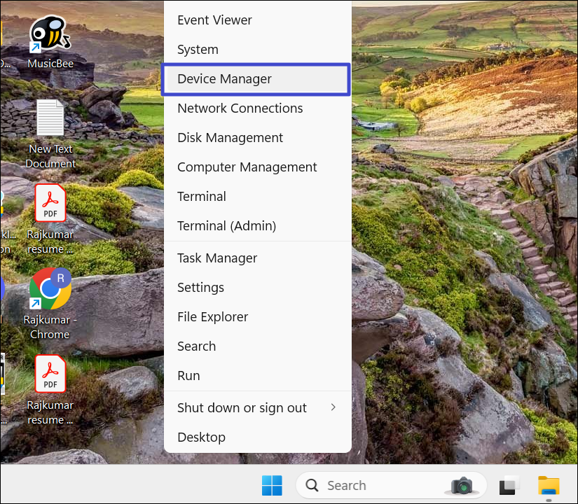 7. 右鍵單擊“開始”菜單並選擇“裝置經理”。