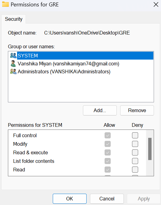 - 分配完全控制權限對於您的帳戶,然後單擊好的。
