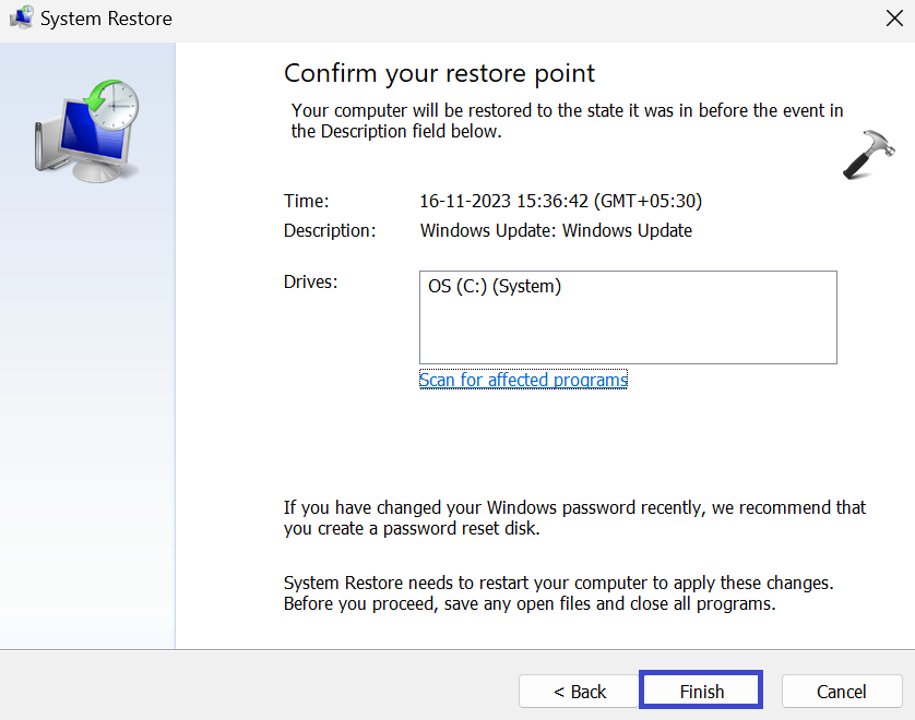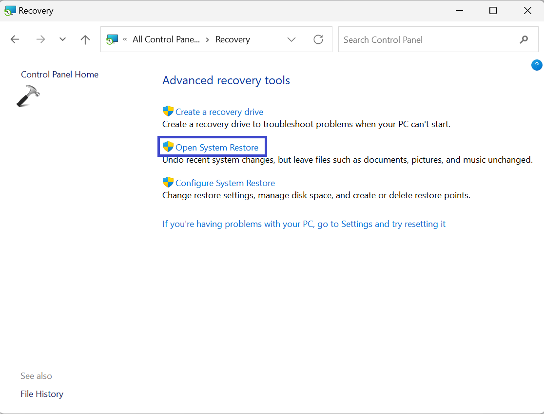 方法 4:修復:使用系統還原“重置您的電腦時出現問題”