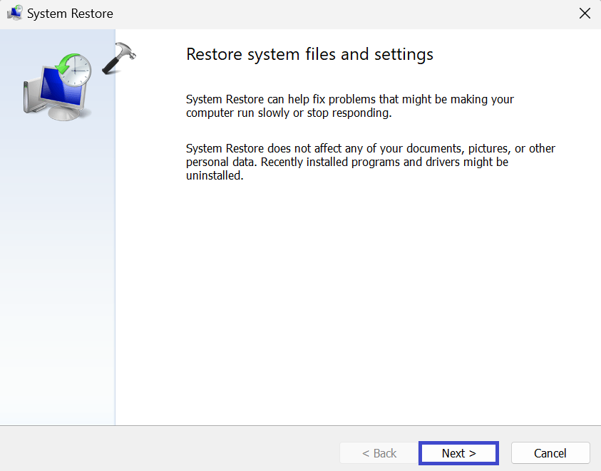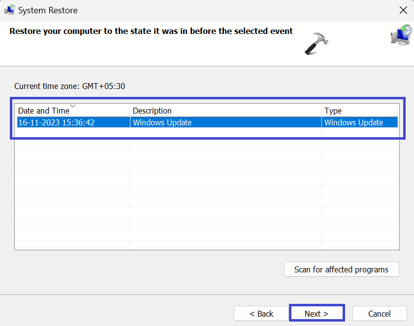 3. 之後,選擇最近的還原點並單擊“下一個”。