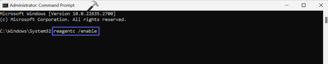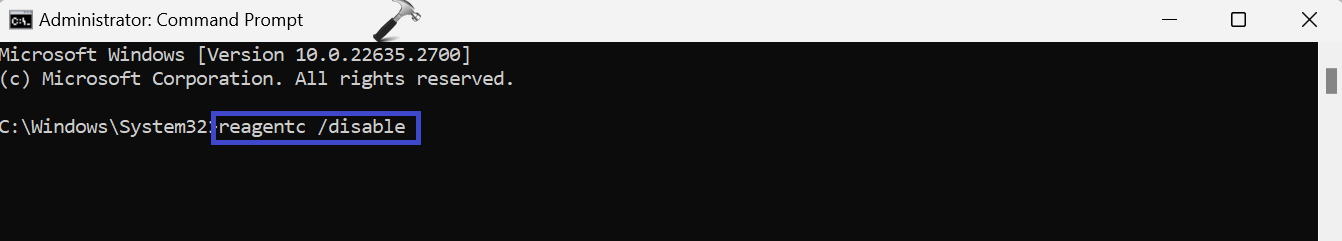 3. 要再次啟動 WinRE,請複制並粘貼以下命令: