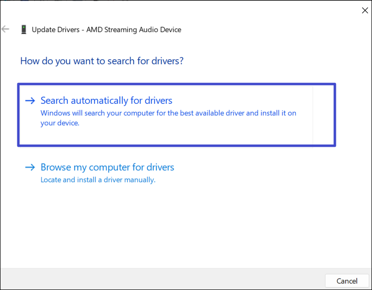 4. 之後,選擇“自動搜索驅動程序”。