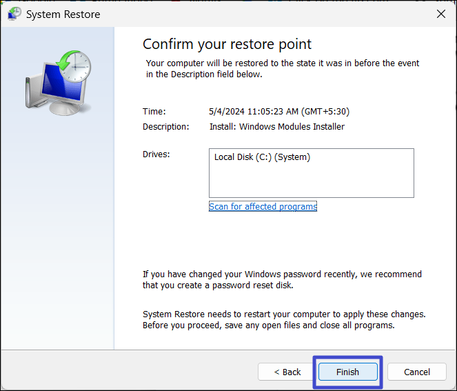 4. 掃描完成後,重新啟動您的電腦。