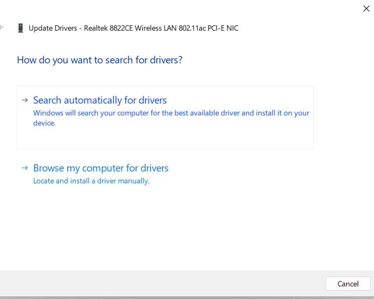 - 現在選擇自動搜索驅動程序在彈出的屏幕中。