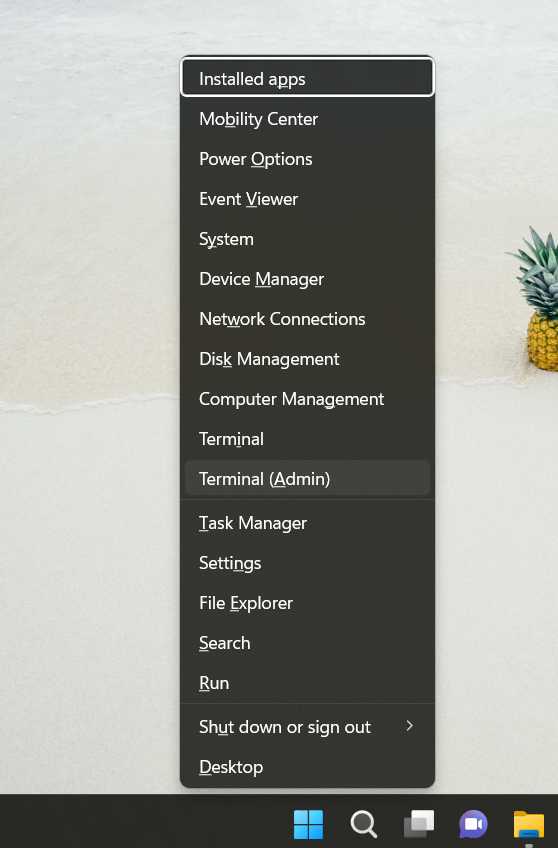 - 在此菜單中,單擊“Windows”終端(管理員)。在 UAC 提示中選擇“是”。