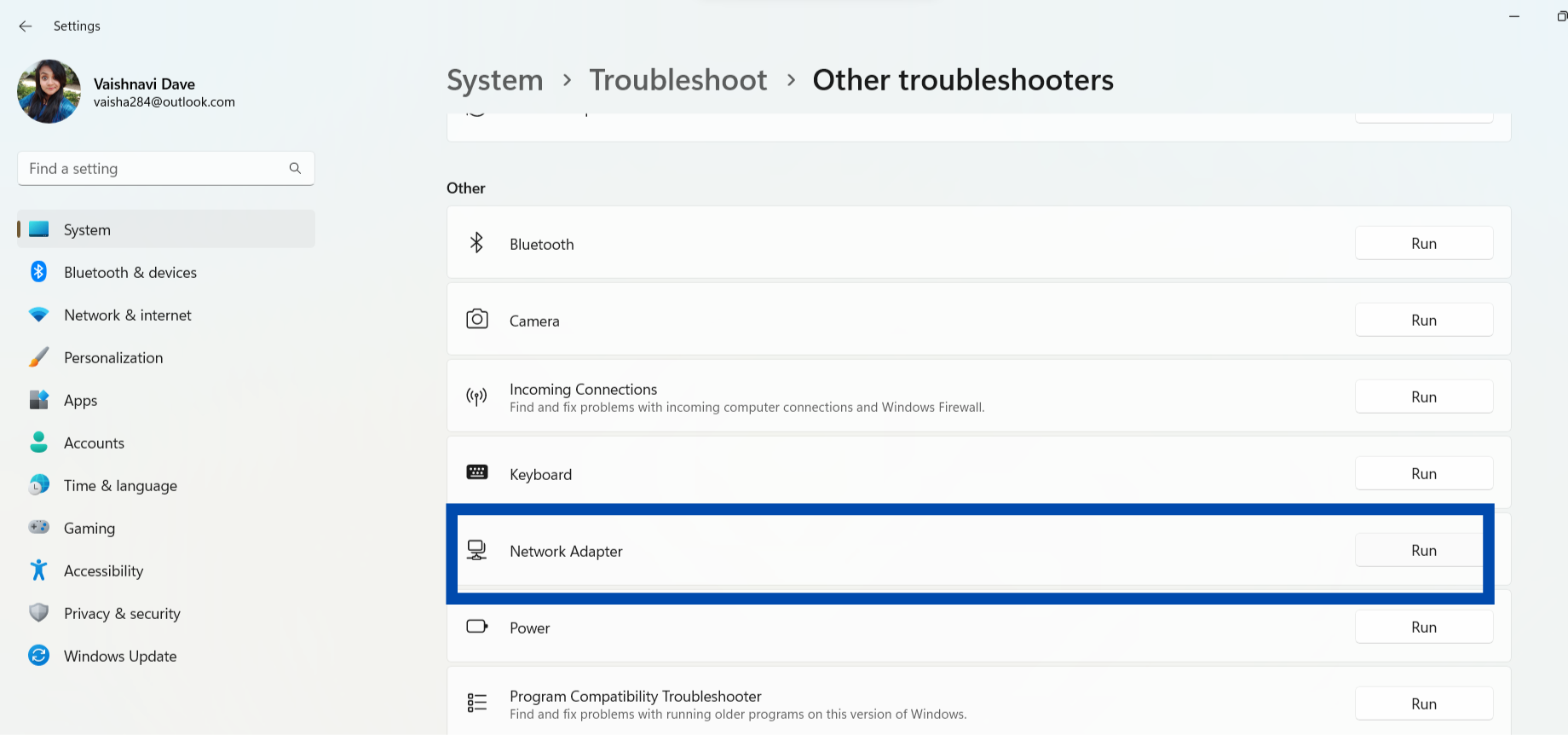 如果圖標仍然丟失,您可以運行網絡適配器疑難解答。為此,您需要執行相同的步驟,直到步驟 3。在“其他疑難解答”窗口中,選擇“網絡適配器運行”。