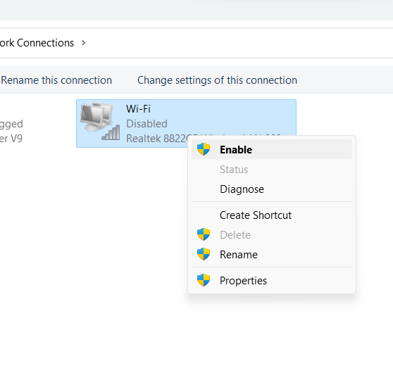 修復 2:在網絡連接中啟用 Wi-Fi 適配器