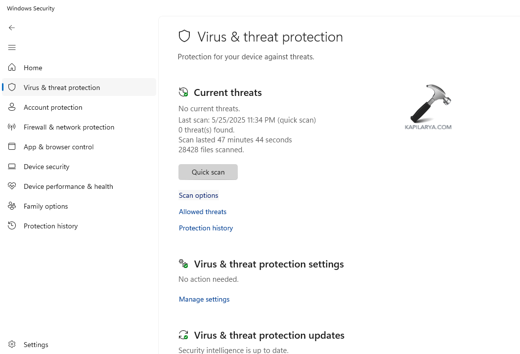 步驟2-接下來轉到病毒和威脅防護 > 當前威脅 > 掃描選項。