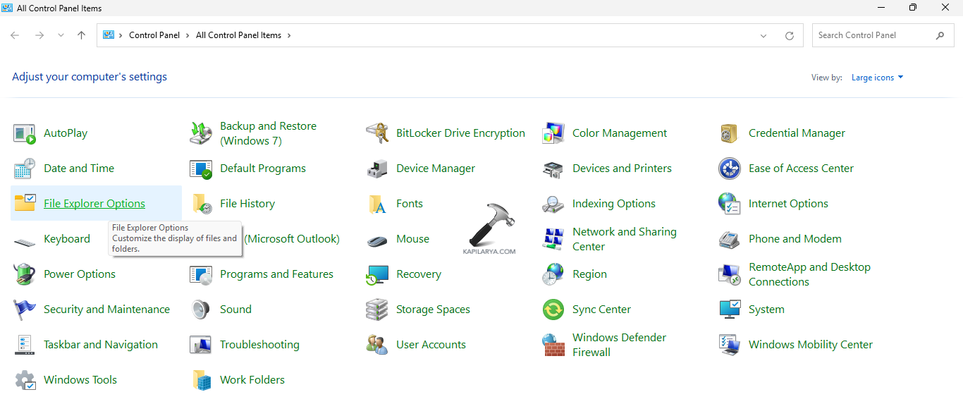 步驟1-打開控制面板 > 文件資源管理器選項。