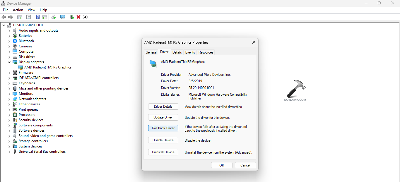 如果更新驅動程序不能解決問題,請嘗試將驅動程序回滾到以前的版本,看看是否有幫助。請按照以下步驟操作。