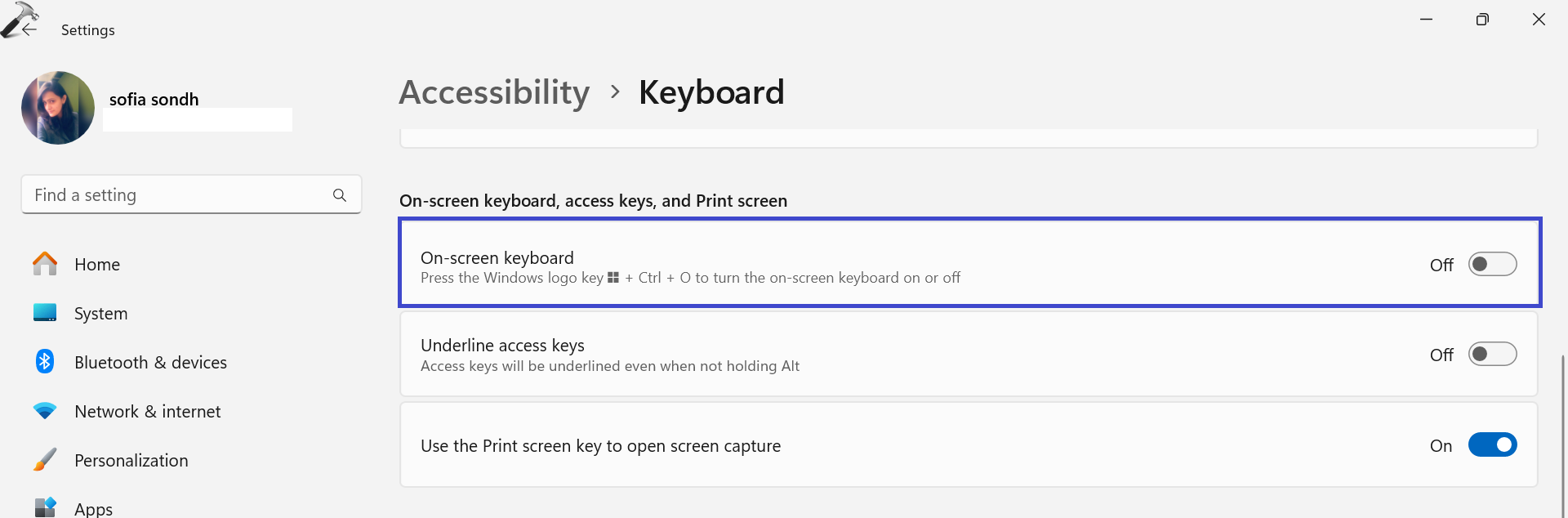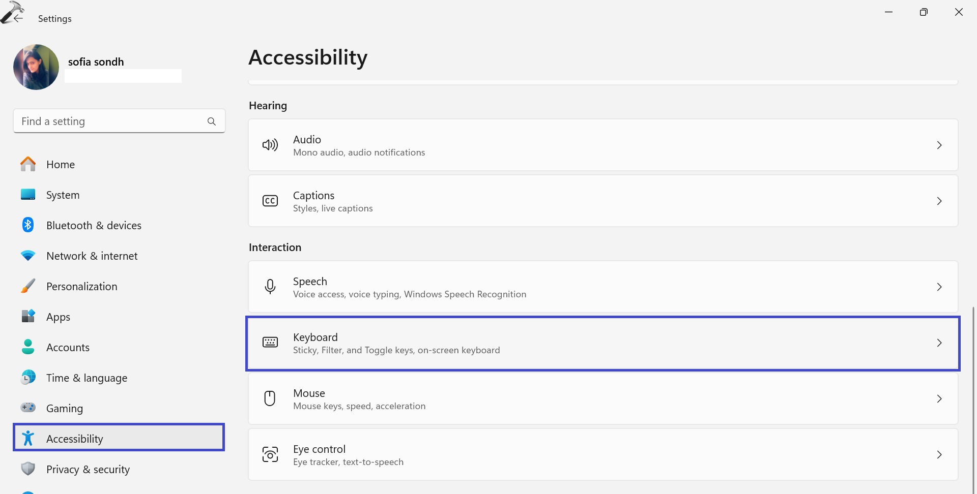 1. 打開設置應用程序並單擊“輔助功能 => 鍵盤”。