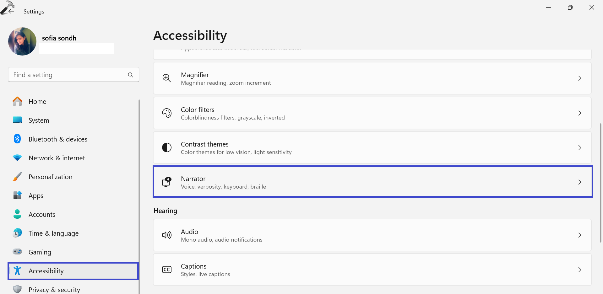 1. 打開設置應用程序並單擊“輔助功能 => 講述人”。