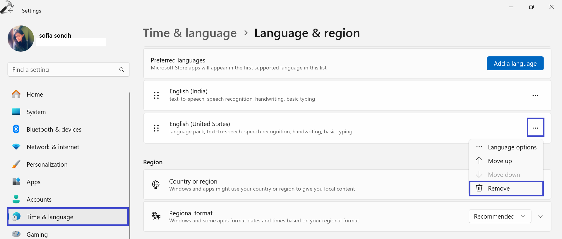 例如,如果您想卸載英語(美國)語言,則復制並粘貼以下命令: