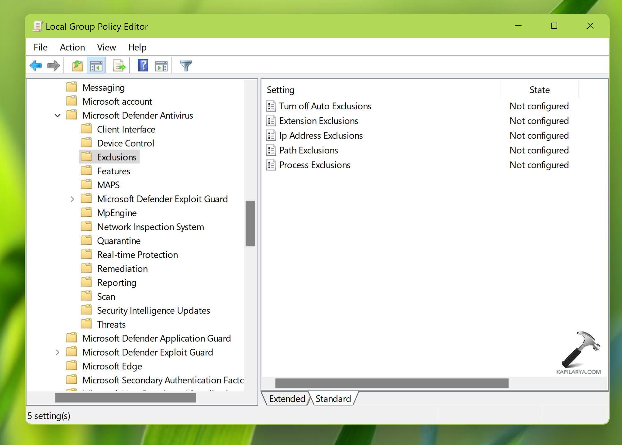 如果您位於託管網絡上或使用組策略設置,請確保沒有任何策略會覆蓋 Windows 安全排除項或與 Windows 安全排除項衝突。